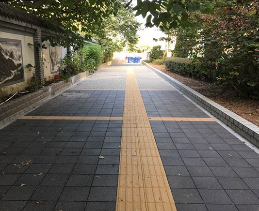 透水磚的多孔性質,使得聲波打在道路表面,引起透水磚內(nèi)部小孔或間隙的空氣運動,緊靠孔壁表面